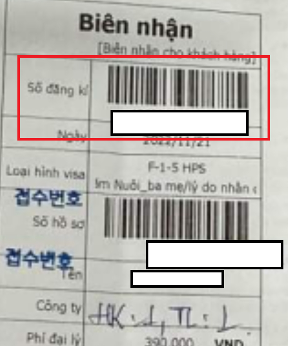 🔹 비자 접수 신청 번호 (Số đăng ký)