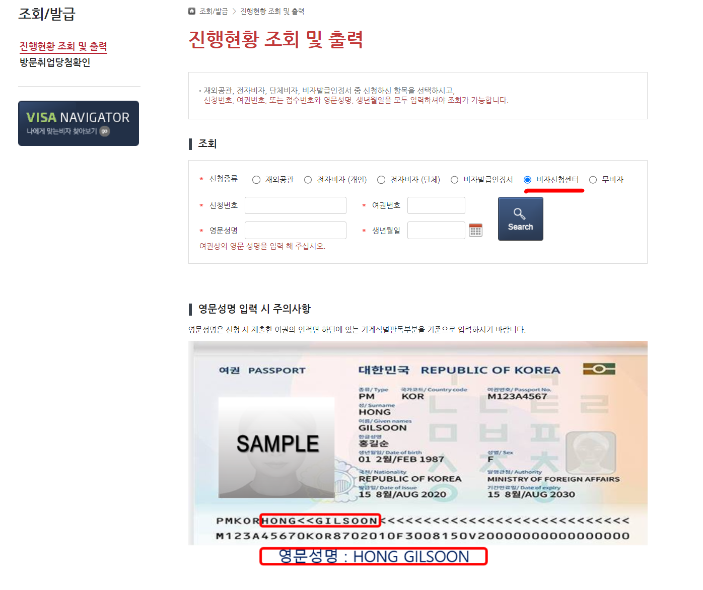 📢 여권 정보와 신청번호를 준비하면 간편하게 조회할 수 있습니다!