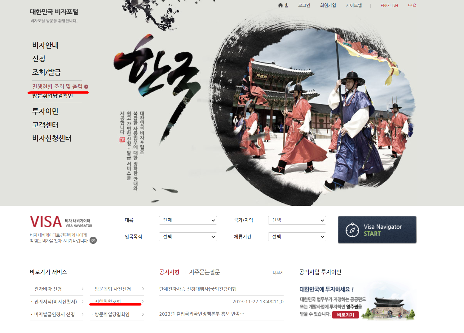 - 입력 내용이 정확하다면 비자 진행 상태가 조회됨!
