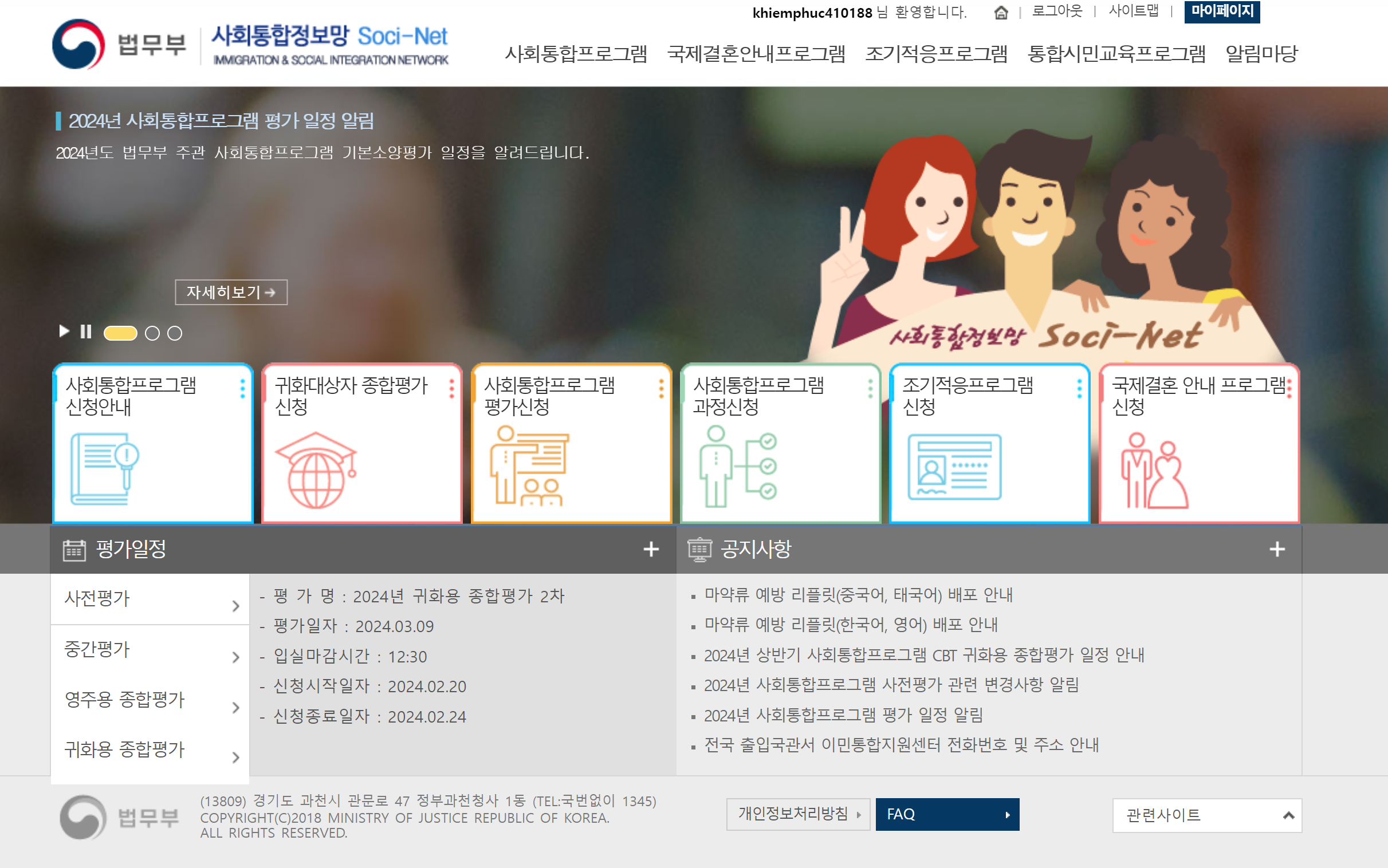 => 사회통합정보망(http://www.socinet.go.kr) 접속하여 신청