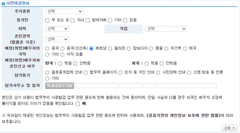 ✔ "국제결혼 안내프로그램 신청" 클릭